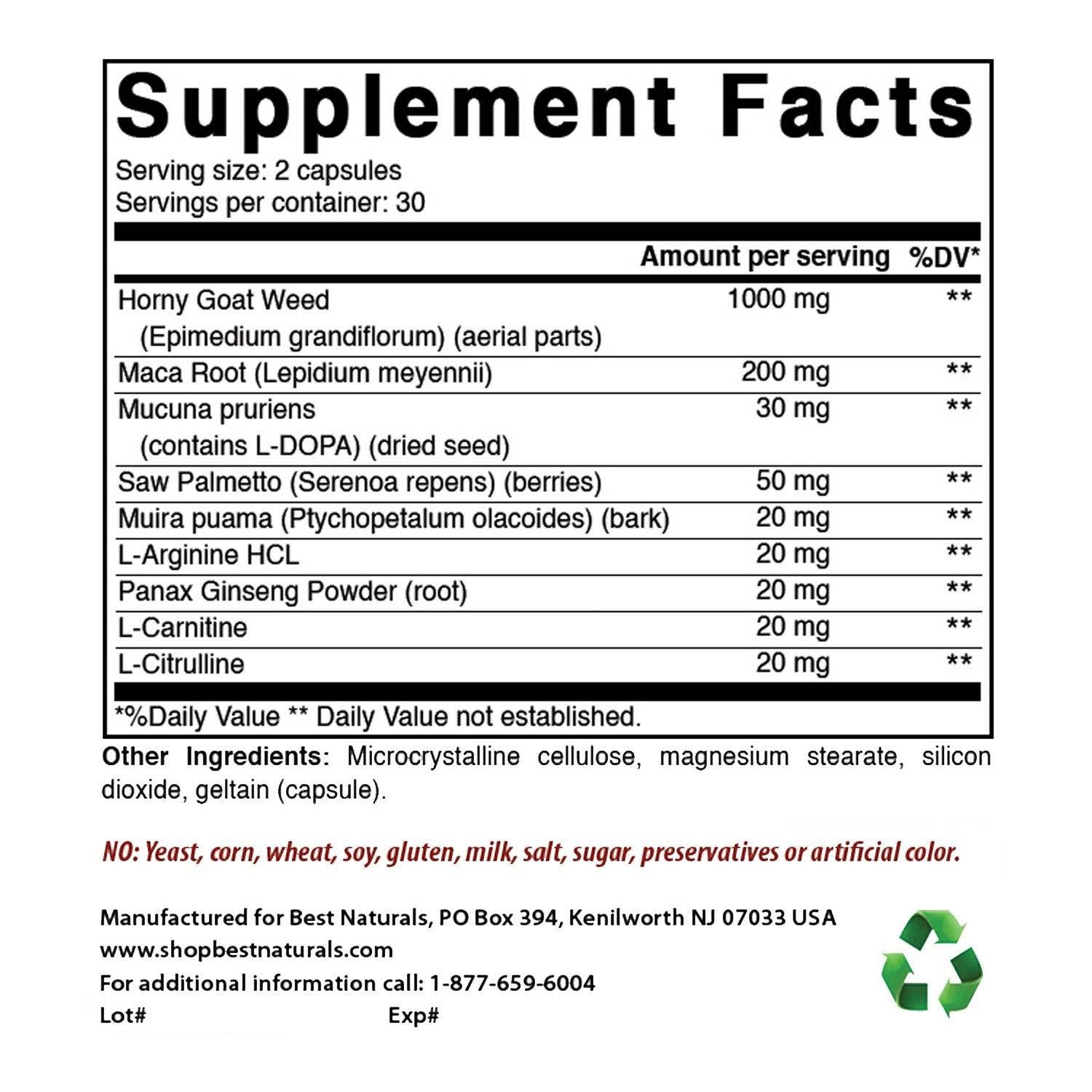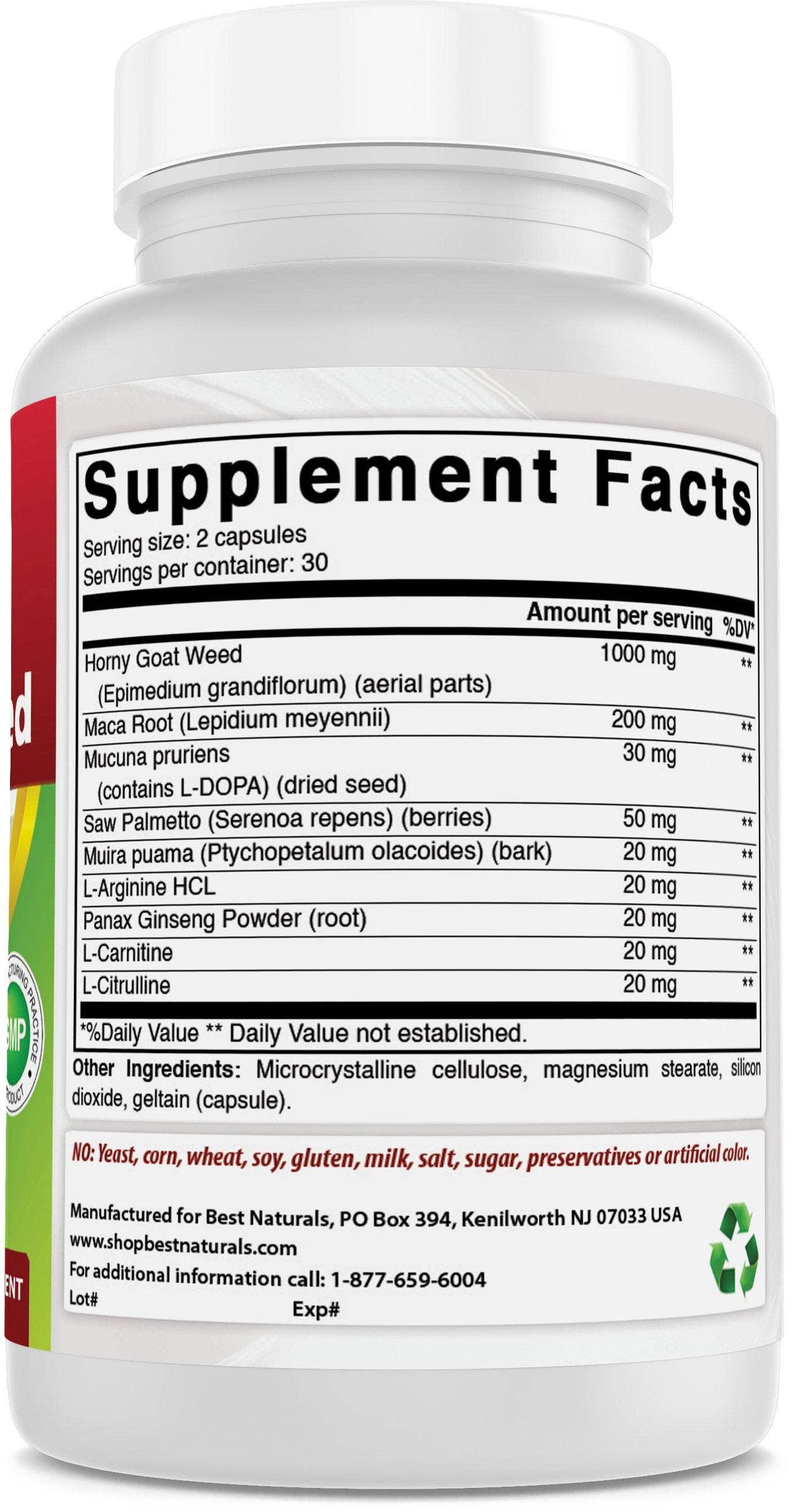 1000 Mg of horny goat weed per serving - 30 servings per bottle.