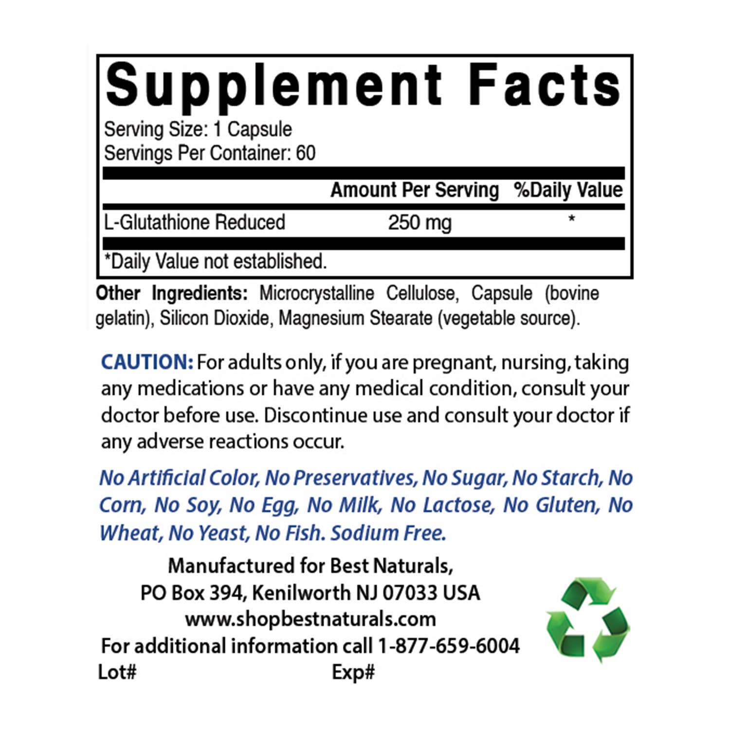 250 mg of Glutathione Reduced per Capsule - 60 Capsules per Bottle.