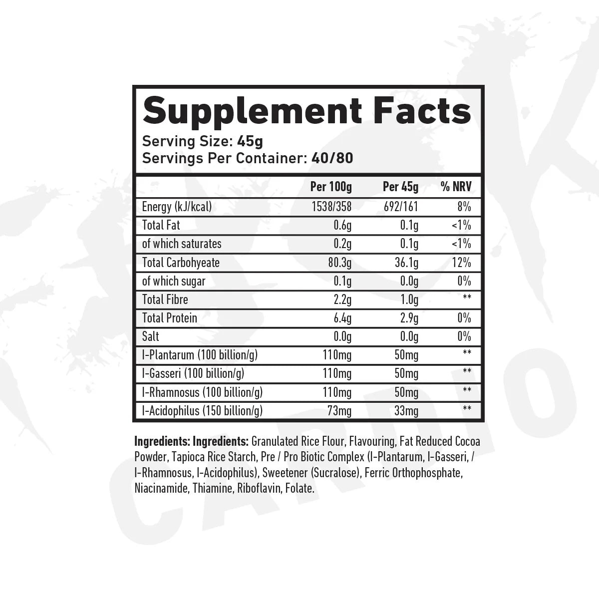 TWP COR+ Cream of Rice is a quick, convenient and highly digestible way to add extra carbohydrates to your daily nutrition. Whether your goal is to fuel intense training, support muscle growth or simply increase calorie intake with ease, COR+ offers a smooth, stomach-friendly carb source that fits perfectly into any routine.