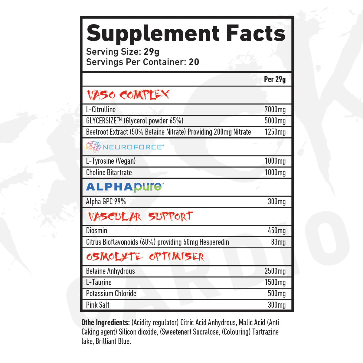 The new and improved Varicose V2 is a fully upgraded, high-performance pump formula designed to deliver extreme vasodilation, muscle fullness and focus with no compromises on quality or dosage. Featuring a powerhouse 7g of L-Citrulline and 5g of GlycerSize™, this is a true next-level vaso product built for those who demand maximum pumps in every session.