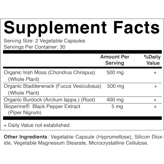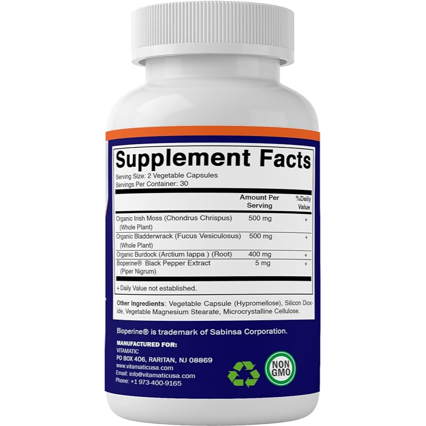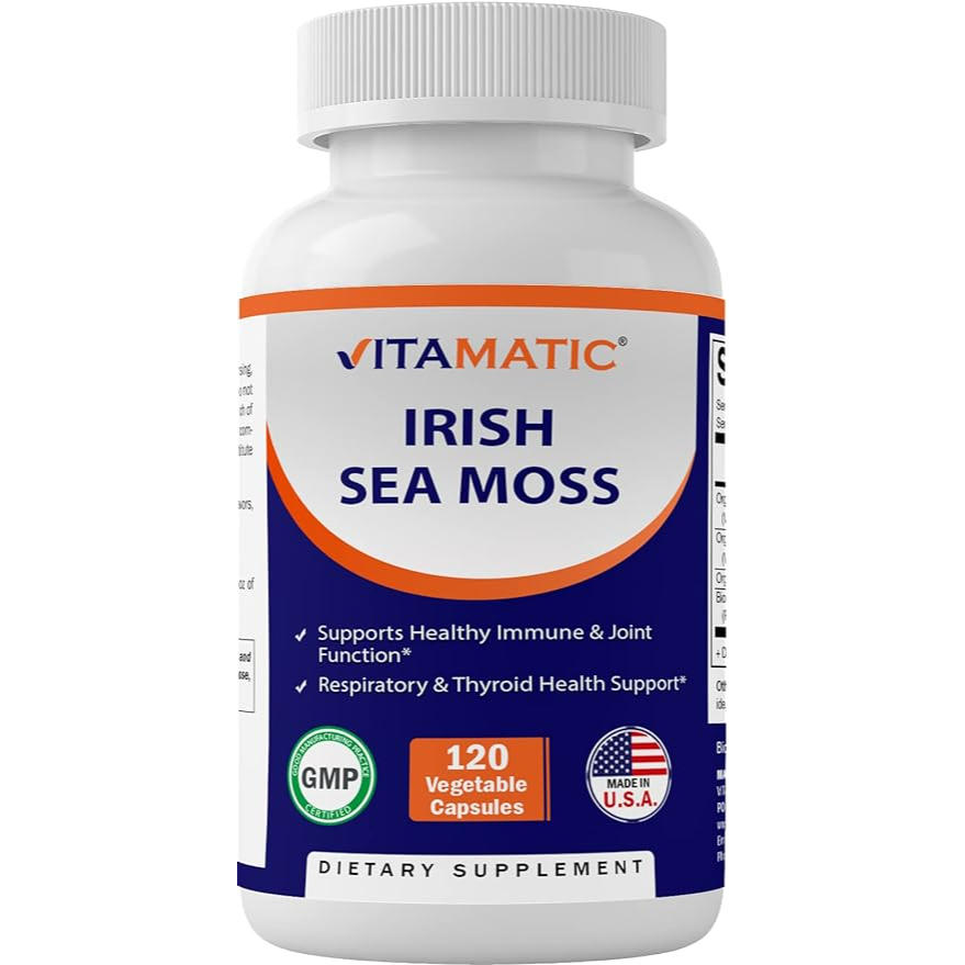 Vitamatic Irish Sea Moss capsules deliver a potent dose of nutrient-rich sea moss in convenient vegetable capsules. Formulated to support overall wellness, this supplement provides essential minerals and antioxidants that promote healthy skin, digestion, and immune function. Each capsule contains a strong concentration of pure Irish sea moss, making it easy to incorporate into your daily routine while ensuring maximum absorption. Ideal for those seeking a natural, plant-based source of vital nutrients to enhance their health regimen.